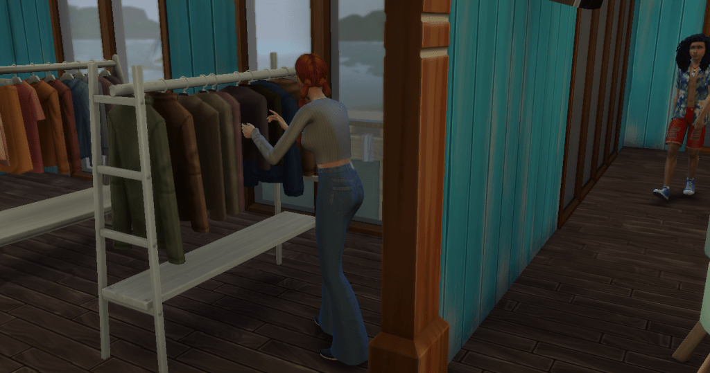 The beach was cloudy and gloomy, but I didn’t really mind. If I could earn a bit of money thrifting, I could build a little hut to keep the rain off. Plus, the inheritance I’d received from my relative included a little SimRay they’d been working on. According to the letter it came with, the SimRay could turn money into almost anything. It could even build a house, apparently. If I could earn enough money, maybe §20k, I could test it out.
