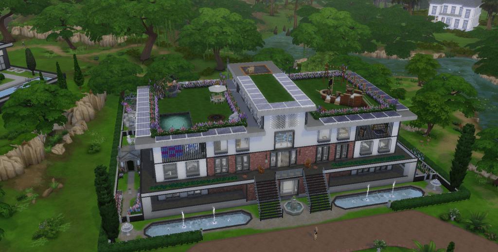 The mansion was absolutely massive, and breathtakingly beautiful. From the outside it had a modern feel, with its sleek design and lots of concrete and glass. The front door was on the second floor, and twin staircases led up to it.